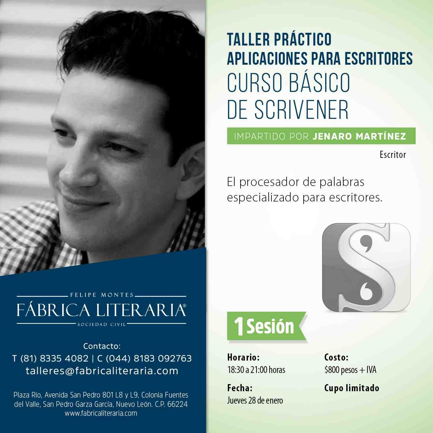 El segundo taller se hará el Jueves 28 de Enero y será un curso básico de Scrivener, el procesador de palabras especializado para escritores. Olvídate del Word, y aprende a utilizar esta aplicación muy completa diseñada para soportar todo el proceso de un autor para escribir, desarrollar, formatear, diseñar y publicar tu obra. Muchos autores profesionales en el mundo la utilizan para escribir sus bestsellers.